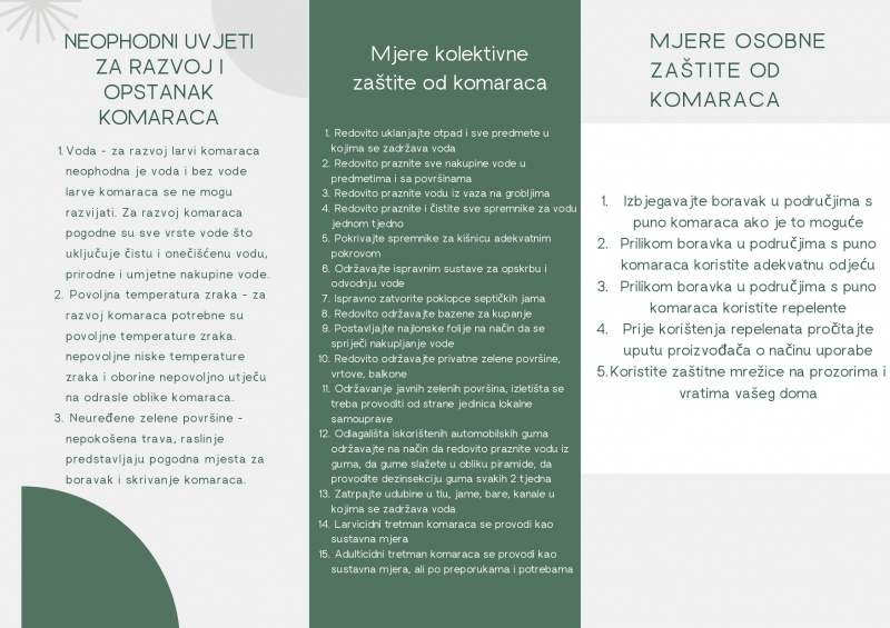 Služba za epidemiologiju i javno zdravstvo : Letak za sprječavanje razvoja komaraca