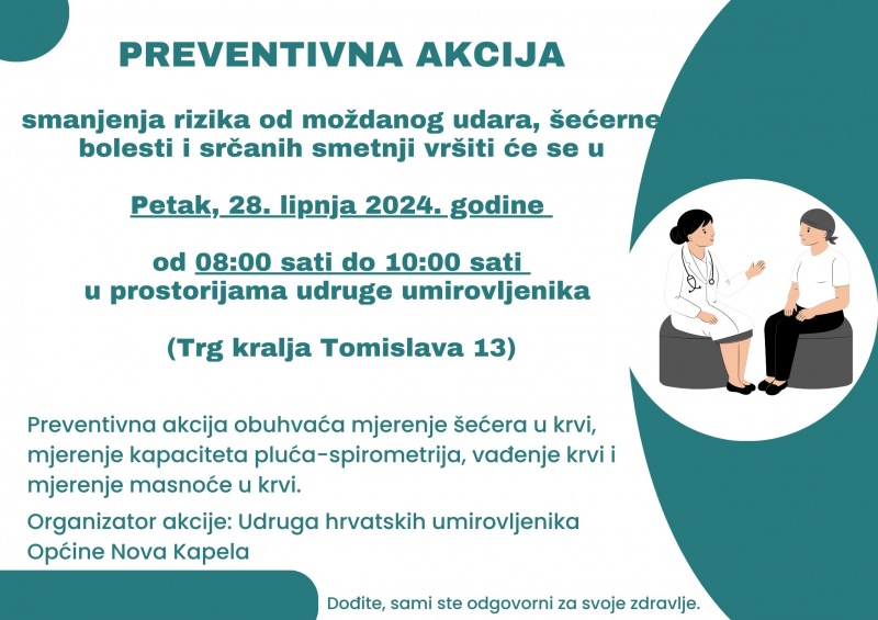 Preventivna akcija smanjenja rizika od moždanog udara, šećerne bolesti i srčanih smetnji- 28.6.2024.