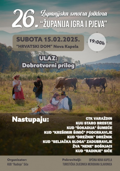 26. Županijska smotra folklora "Županija igra i pjeva" 15.2.2025. 19:00h