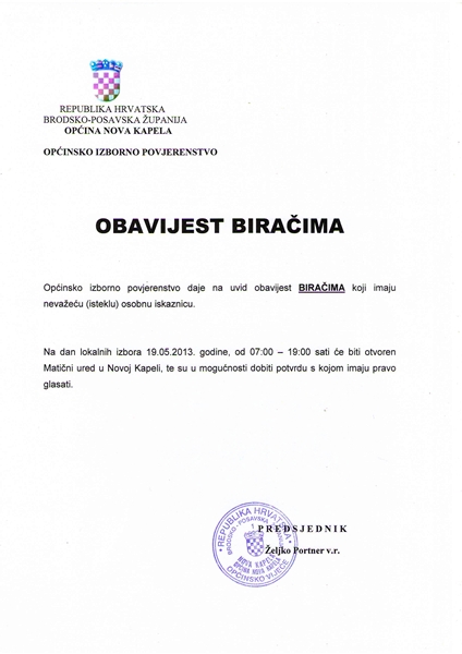 OBAVIJEST OPĆINSKOG IZBORNOG POVJERENSTVA